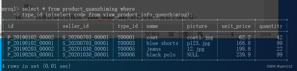 - 查看产品信息视图中已经有过订单销售记录的产品数据(子查询 in)