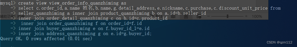 - 创建订单信息视图“view_order_ info_姓名全拼”查看上述内容