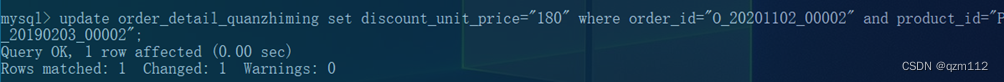 - 修改订单详情表中O_20201102_00002订单P_20190203_00002产品的折后单价为180