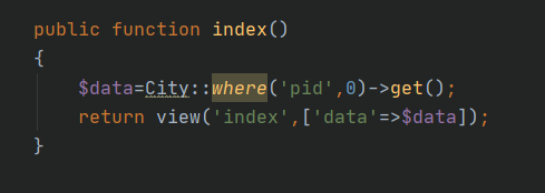 $data=City::where('pid',$id)->get();