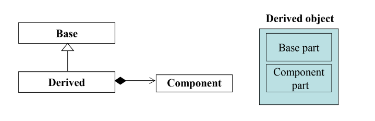 - Derived 的析构函数首先执行自己, 然后调用 Component 的 析构函数,然后調用 Base 的析构函数 Derived::~Derived(...){ ... ~Component(), ~Base() };
