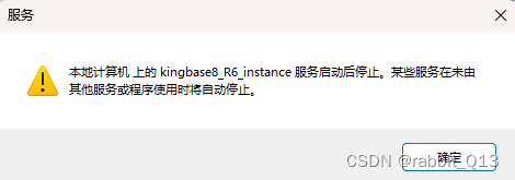 本地计算机上的 kingbase8_R6_instance 服务启动后停止。某些服务在未由其他服务或程序使用时将自动体制。