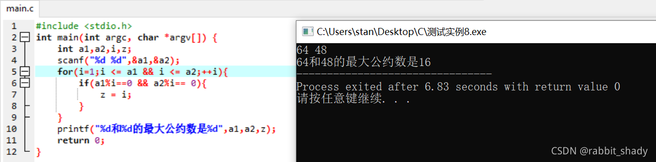 如何去求两个数的最大公约数,需要我们用到for循环和if语句的嵌套。