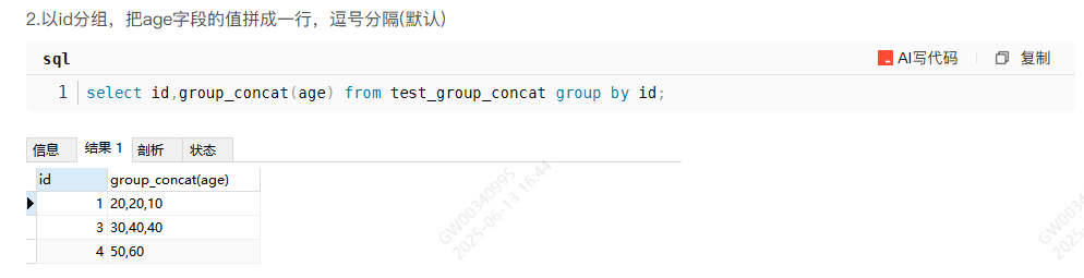 用于将分组内的多个字符串值连接成一个字符串的聚合函数,常用于报表生成、数据汇总等场景