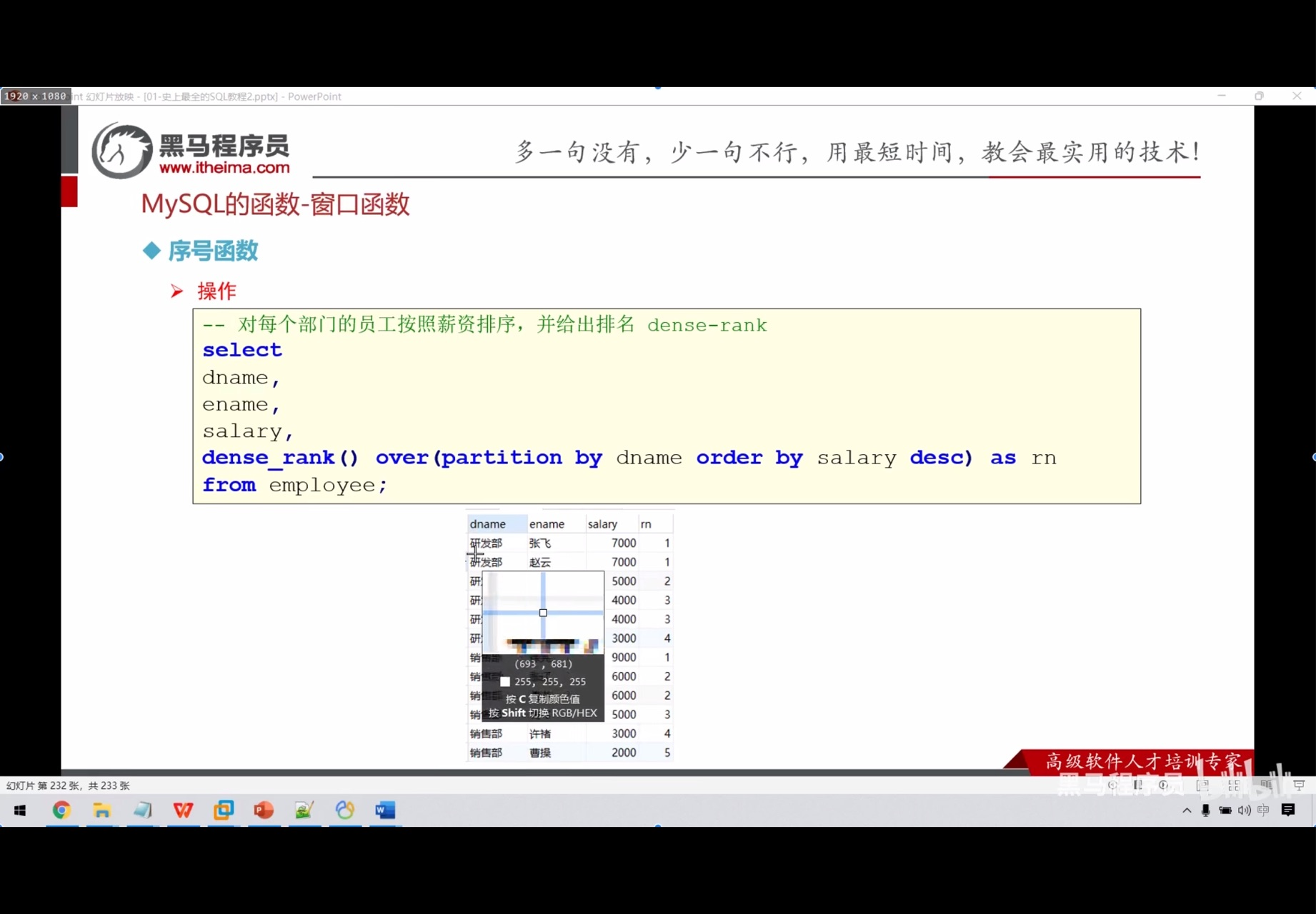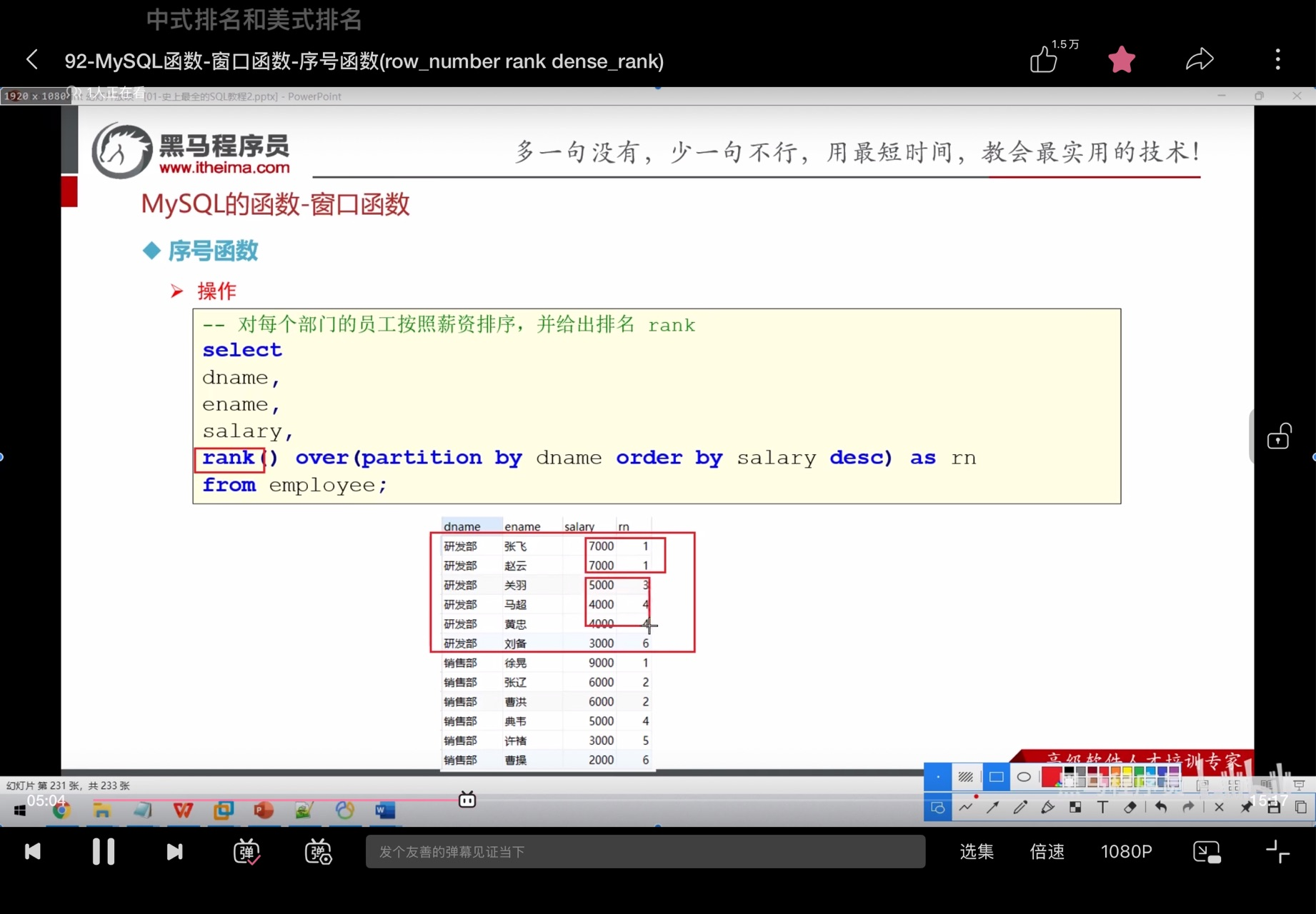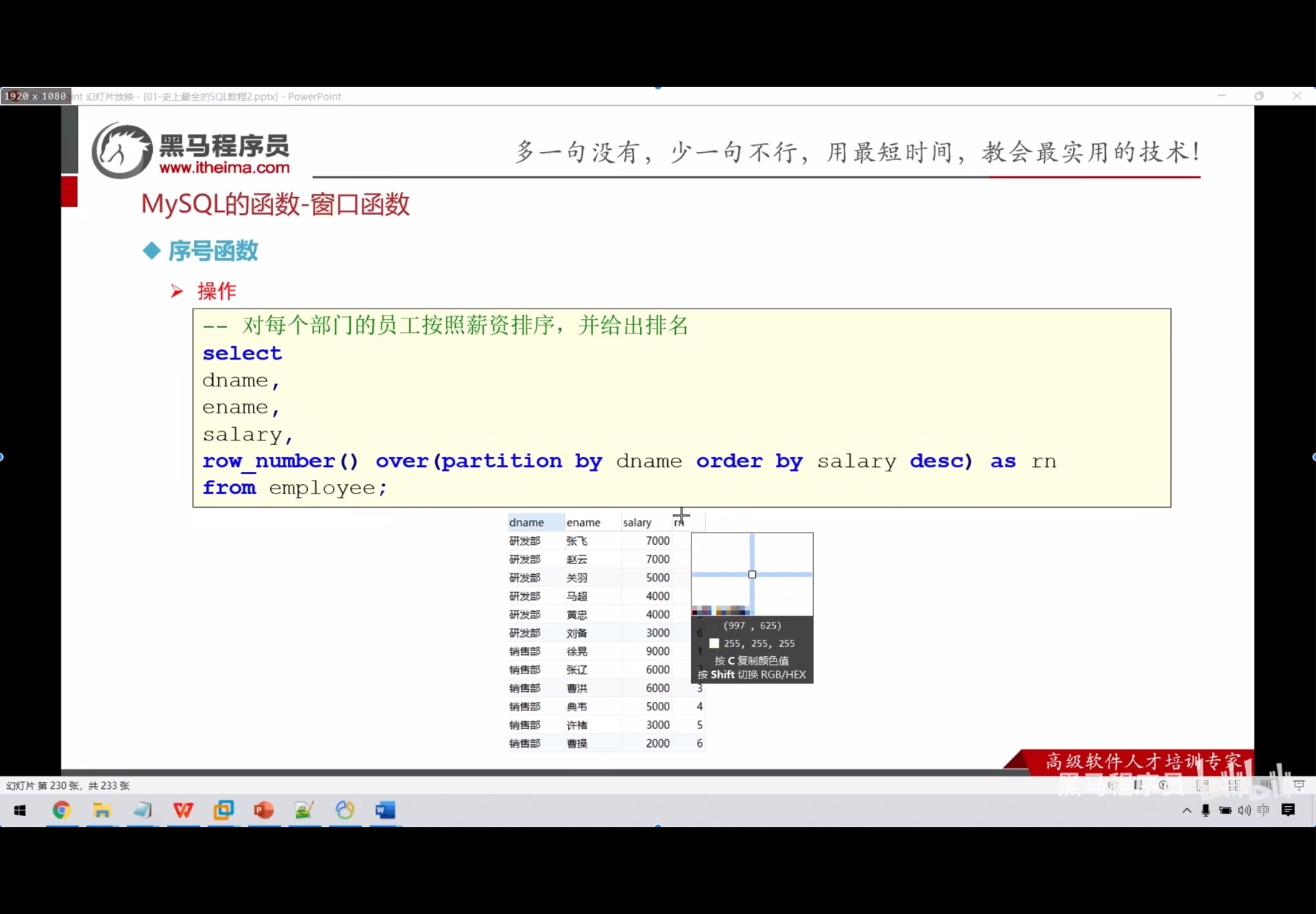 序号函数有三个:row_number()、rank()、dense_rank(),可以用来实现分组排序,并添加序号
