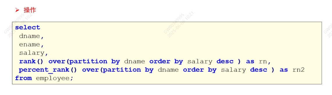用途:分组内小于、等于当前rank值的行数/分组内总行数