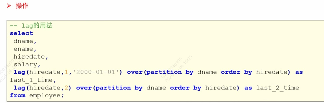 用途:返回位于当前行的前n行(lag(expr, n))或后n行(lead(expr, n))的expr的值