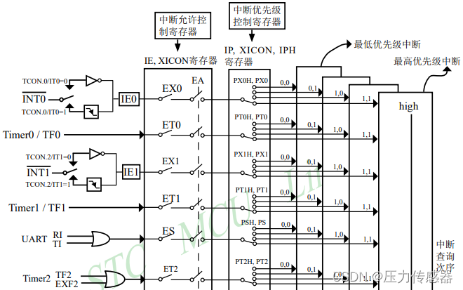 最后,根据单片机的中断结构示意图即可写出串口初始化函数。