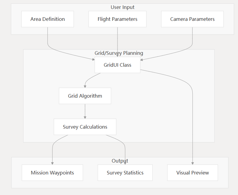 本文档介绍了 Mission Planner 中的网格/勘测规划系统,该系统能够自动创建用于航空勘测和测绘的优化飞行路径。该系统会生成航点模式,通过一系列平行或专用的航线系统性地覆盖指定区域,确保完全覆盖并具有适当的图像重叠度。该系统主要用于摄影测量、农业勘测以及其他需要系统性区域空中覆盖的场景。