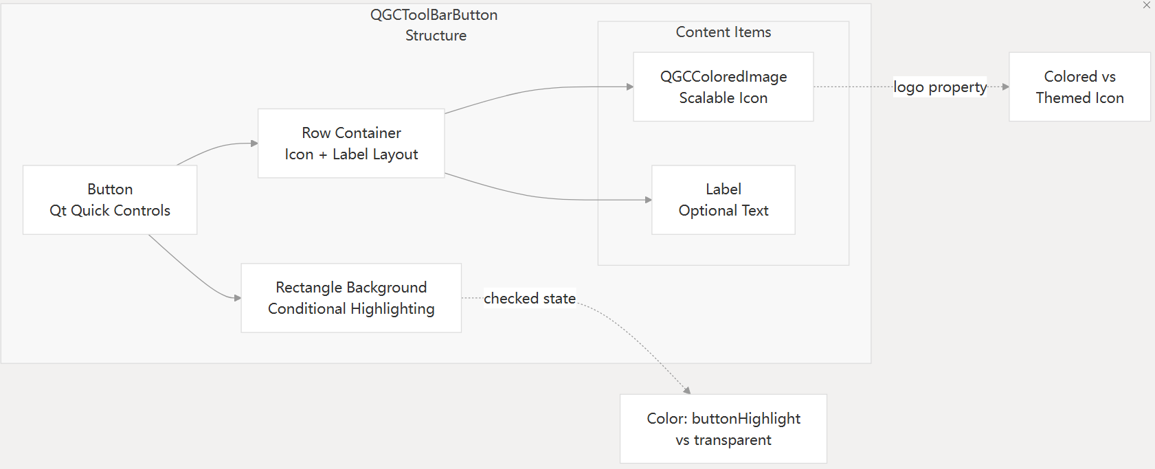 这QGCToolBarButton是工具栏导航和控件的主要构建块。它实现了一个自定义按钮,并满足特定的 QGroundControl 样式和状态管理要求。