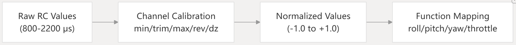 通过以下方法将校准通道映射到飞行控制功能update_rc_functions():