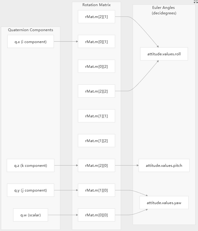 | 旋转矩阵 | matrix33_t rMat | 坐标变换 | imuComputeRotationMatrix() |