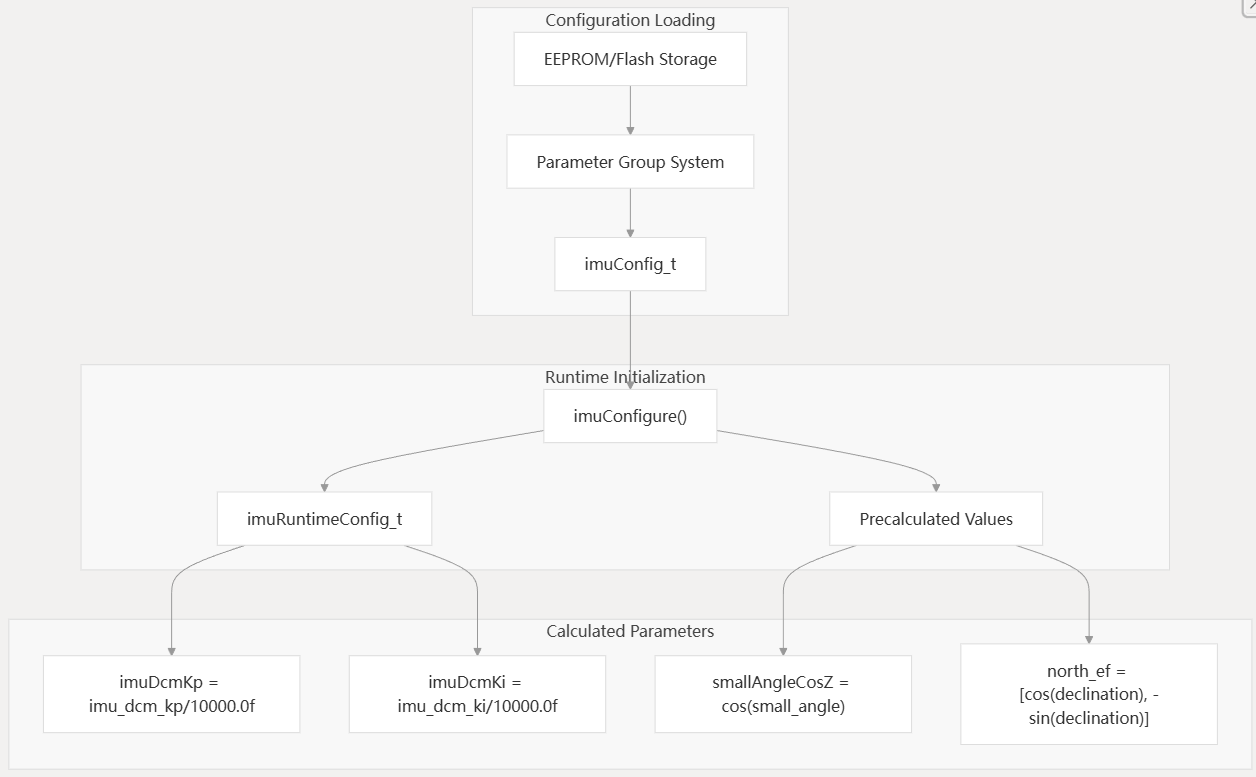 IMU系统通过imuConfig_t参数组和运行时计算进行配置: