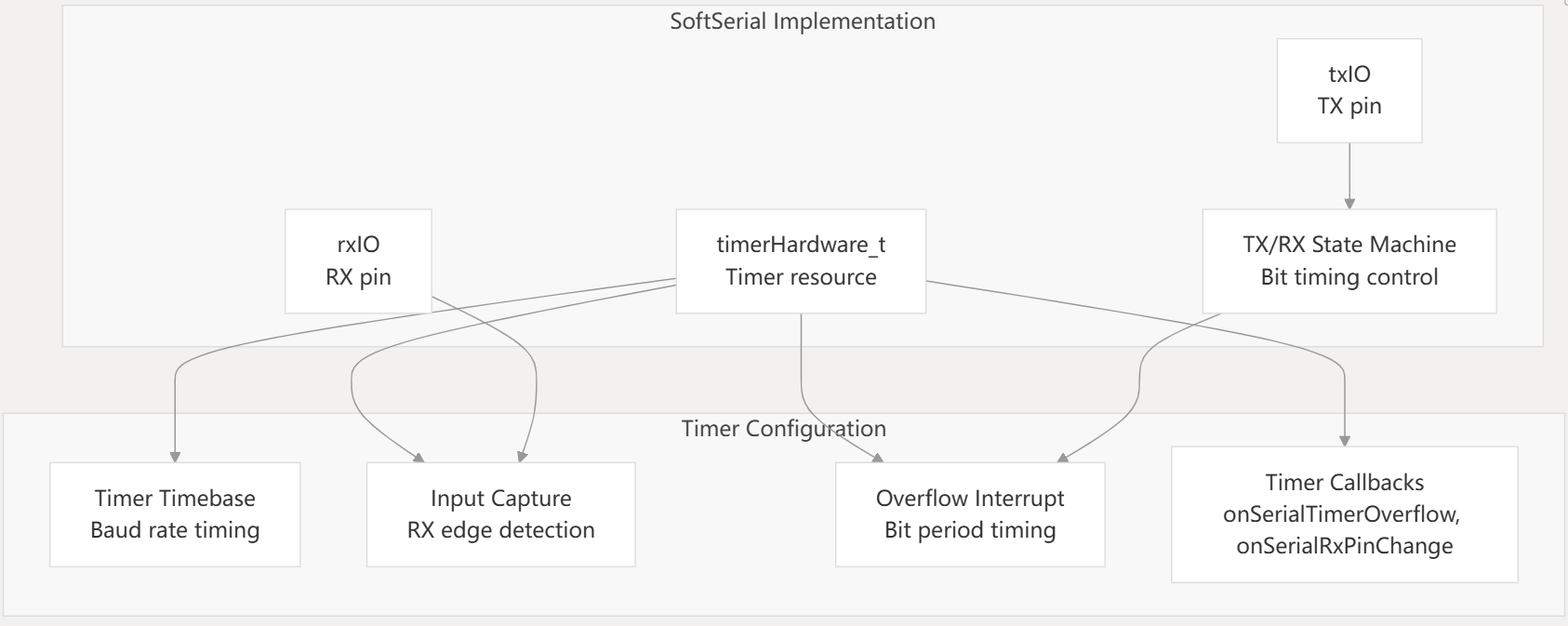 SoftSerial驱动程序使用定时器和GPIO实现UART功能: