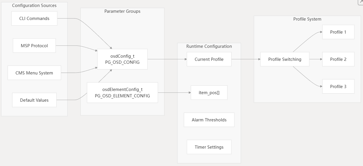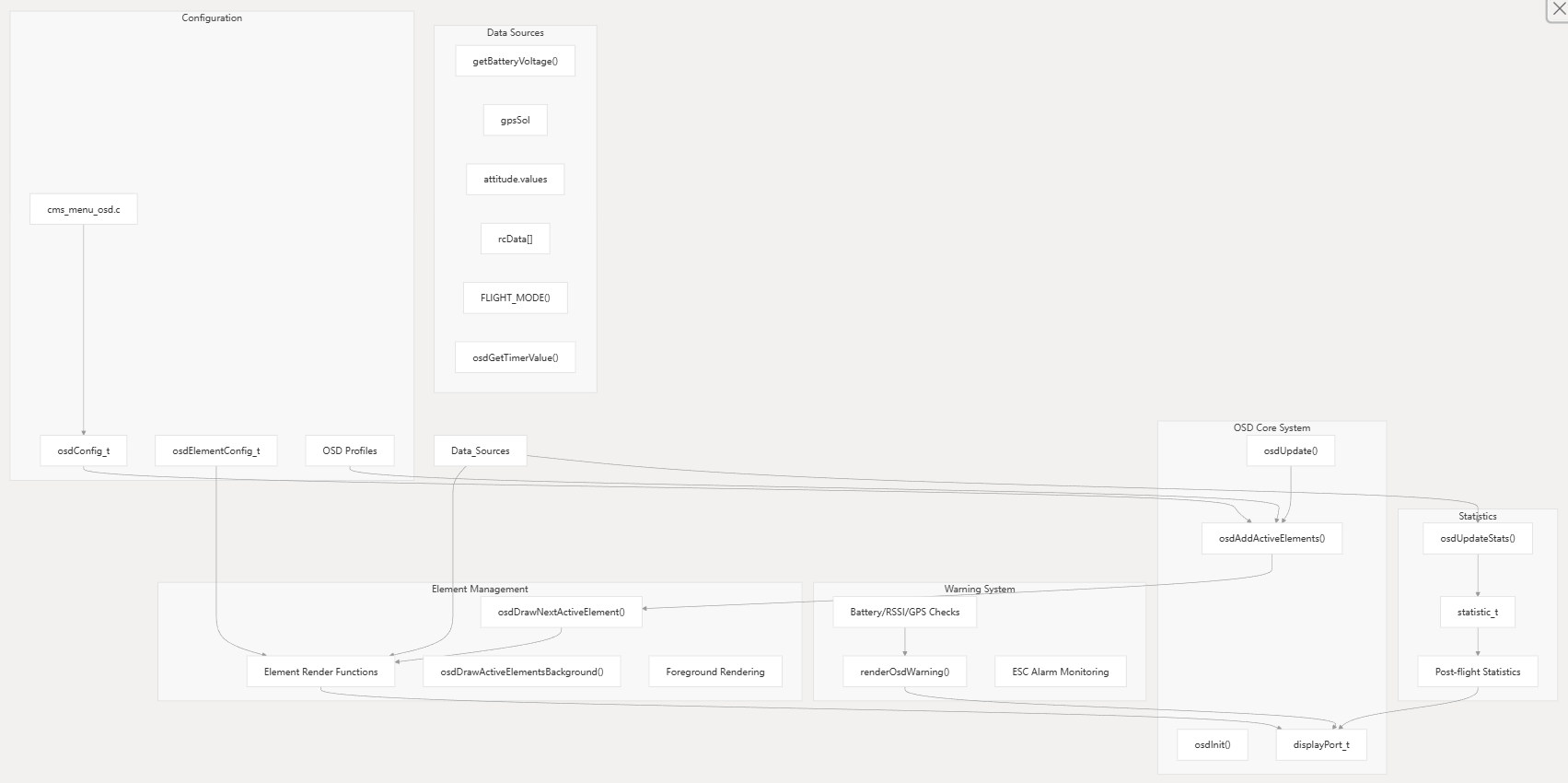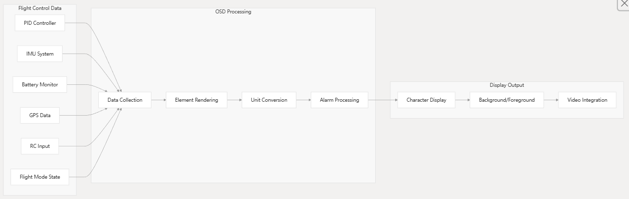 OSD系统由多个相互连接的子系统组成,这些子系统协同工作,提供全面的飞行信息显示: