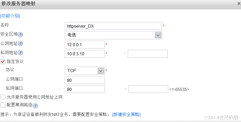 在FW1上配置对应的服务器映射