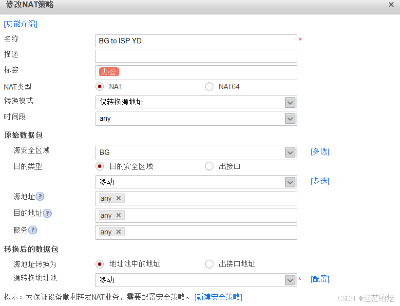 在FW1上配置对应的NAT策略