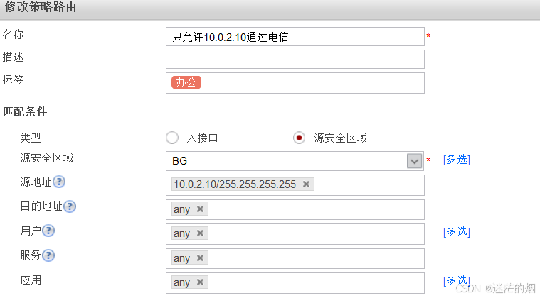 9,多出口环境基于带宽比例进行选路,但是,办公区中10.0.2.10该设备只能通过电信的链路访问互联网。链路开启过载保护,保护阈值80%;