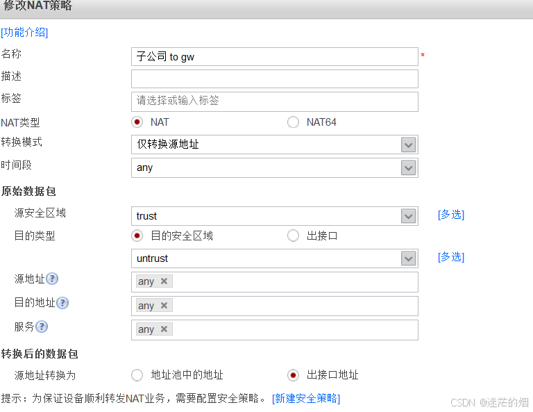 子公司去公网NAT