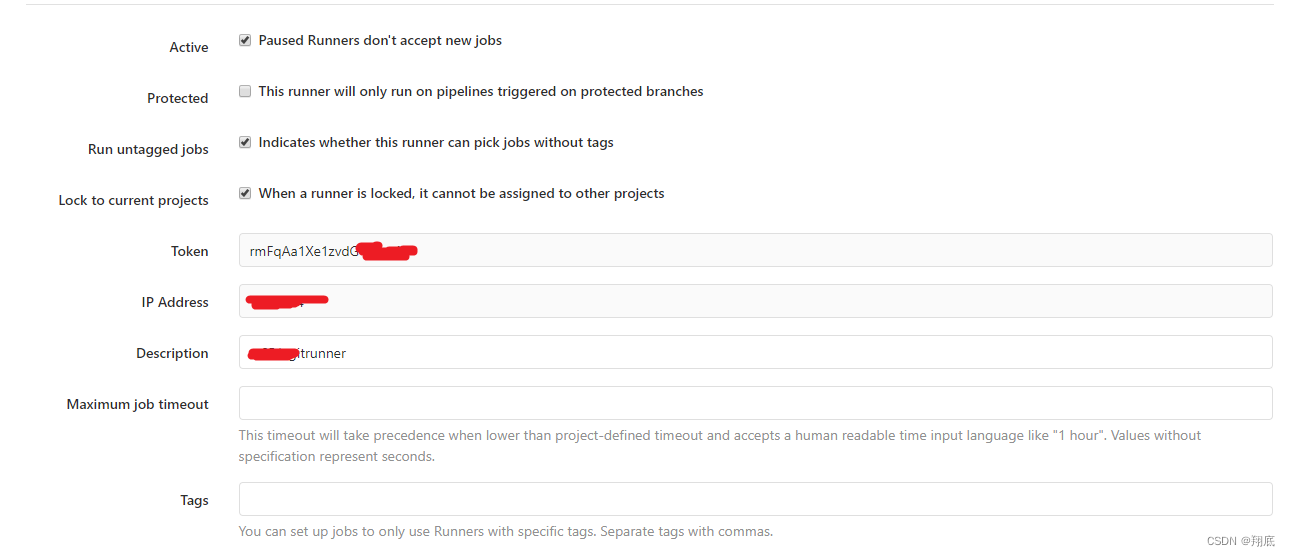 勾选“Indicates whether this runner can pick jobs without tags”,每一个commit都会触发runner被执行。