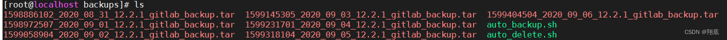 开启自动备份后,每天会在/var/opt/gitlab/backups/路径下产生备份文件,如下图: