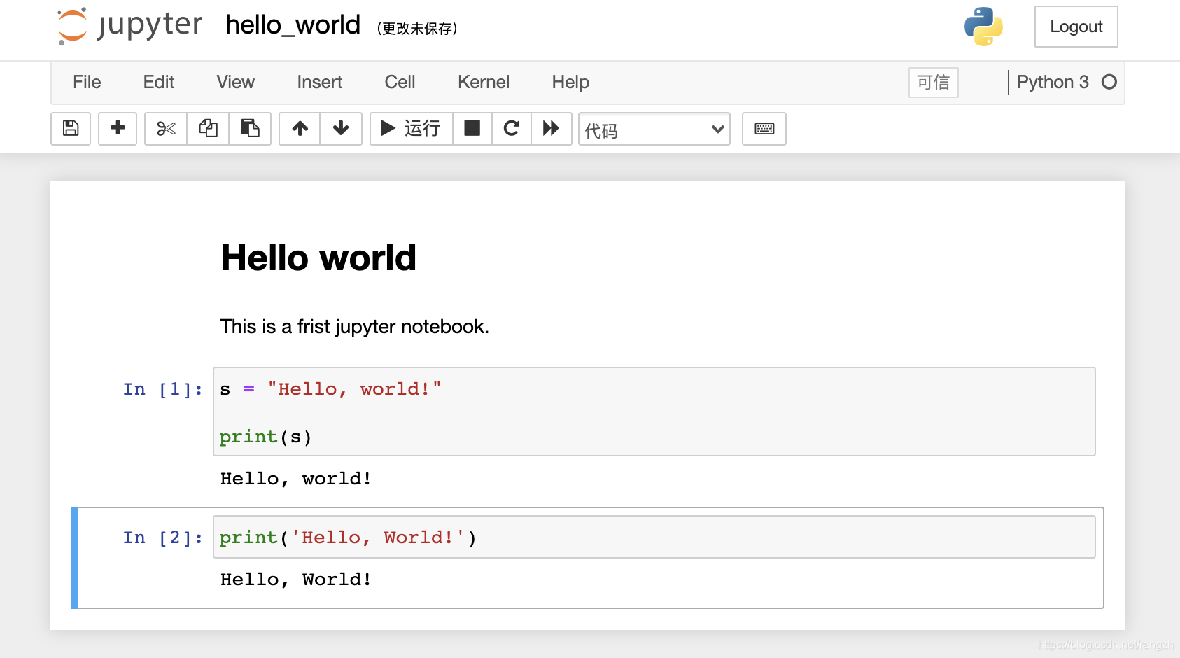 下图是一个混合的notebook示例,前面两个都是Markdown类型的cell,而后面的则是Python代码cell。