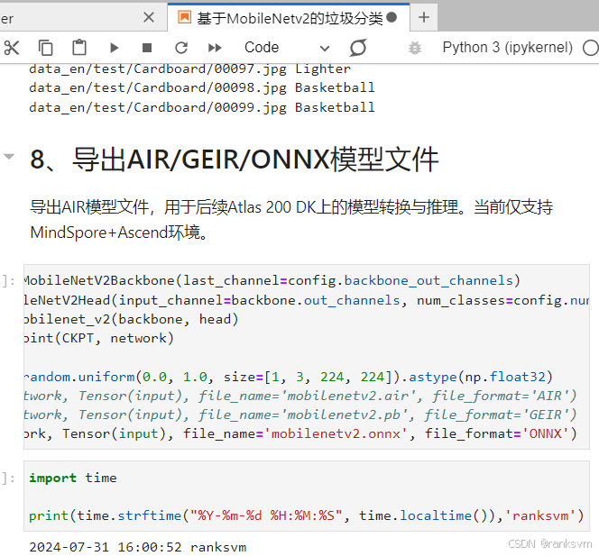 作用:整合主干网络和分类头,构建完整的MobileNetV2模型。