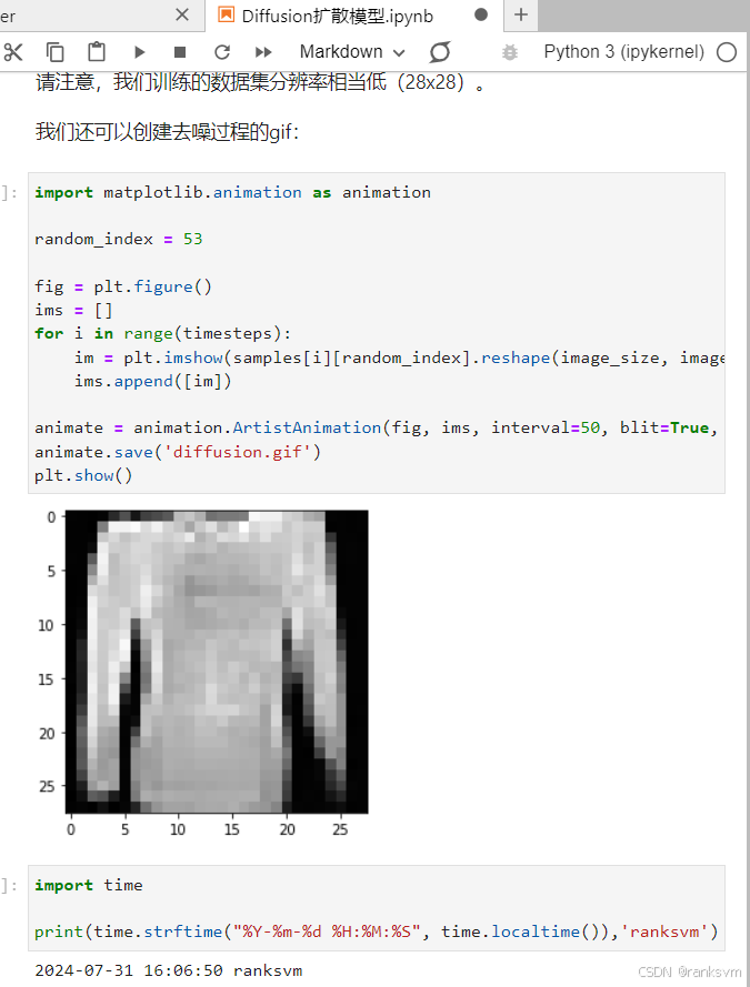 DDPM 是一种基于马尔科夫链的生成模型。其基本思想是将数据生成视为一个逐步去噪的过程,即从纯噪声逐渐生成真实数据。它通过两个过程实现: