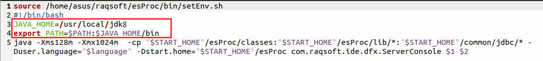 sh /home/asus/raqsoft/esProc/bin/ServerConsole.sh -h &