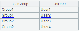 Note: list of groups and users is longer than this simple sample. Each user can belong only to one group (ColUser is PK in table). Groups can have multiple users.