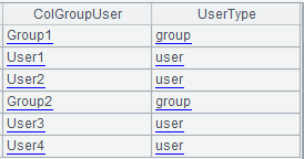 Note: first is Group1, then there are listed all users that belongs to Group1 in our sample there are User1 and User2. Then must be displayed Group2 and after that all users that belongs to Group2 that are User3 and User4.