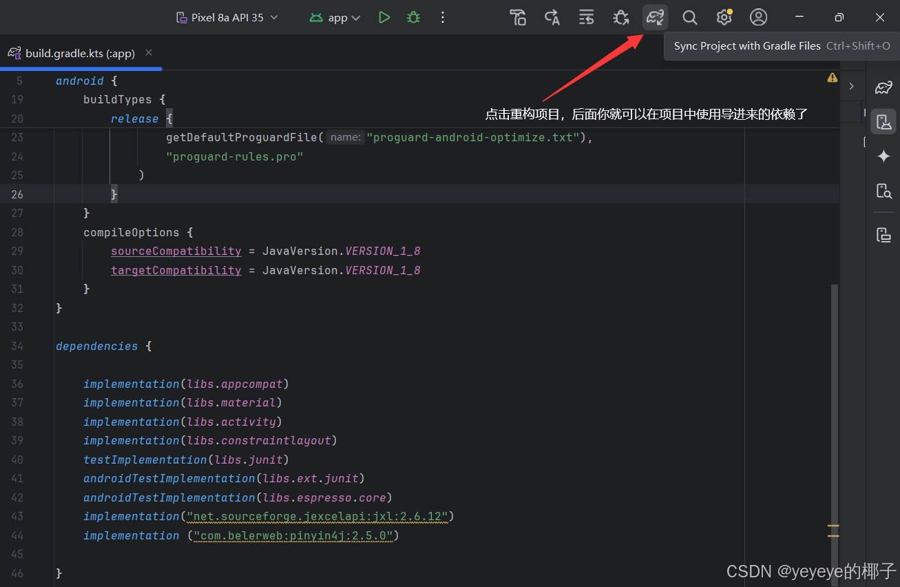 在项目下Gradle Scripts→build.gradle.kts(Module.app)→dependencies{}中加入依赖