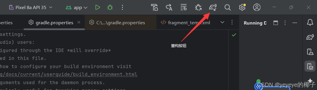 添加代码后,请点击重构(每次修改Gradle Scripts)都需要点击重构: