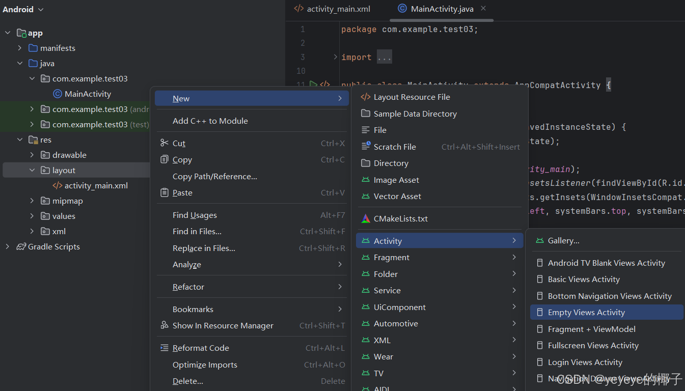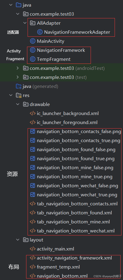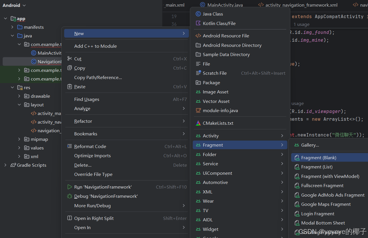 Activity中创建示例:在项目下的res/layout下创建名为NavigationFramework