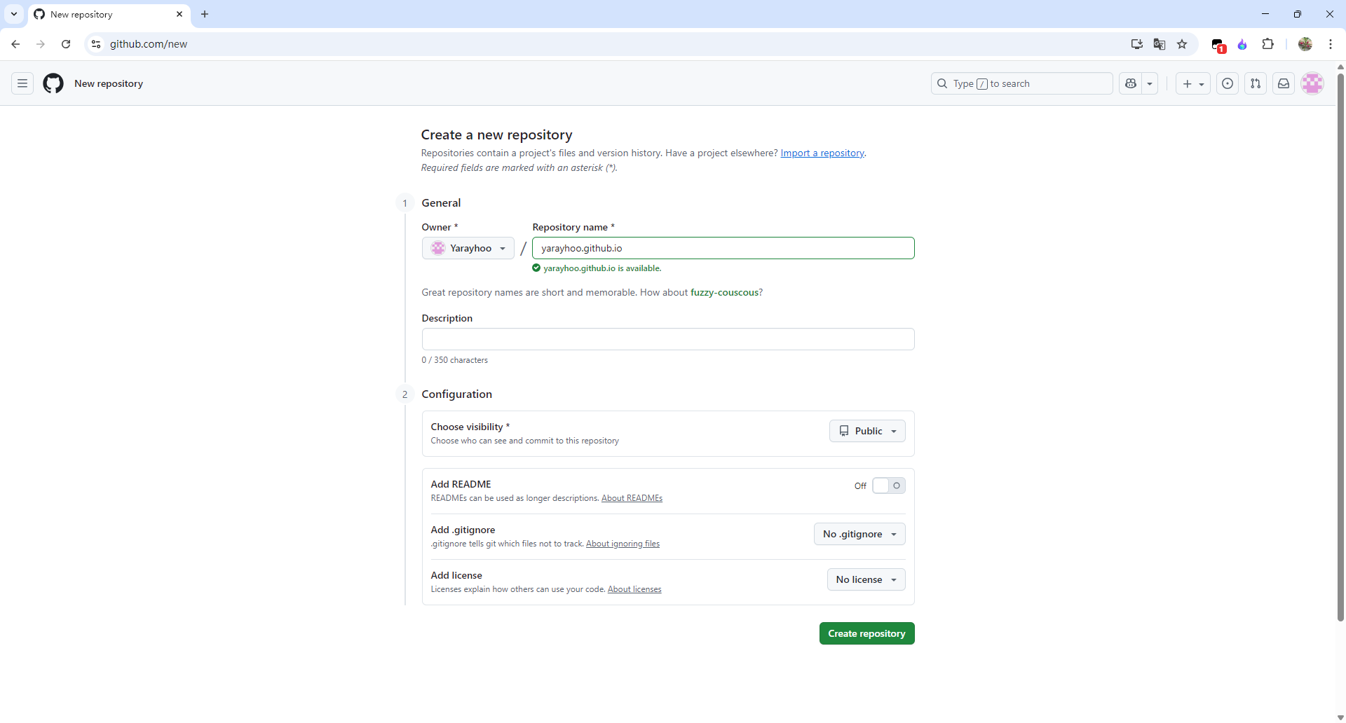 点击右下角的绿色的create repository就可以了