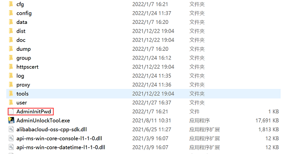 初始管理员密码:启动服务后,在服务器解压文件夹的AdminInitPwd,查看管理员密码