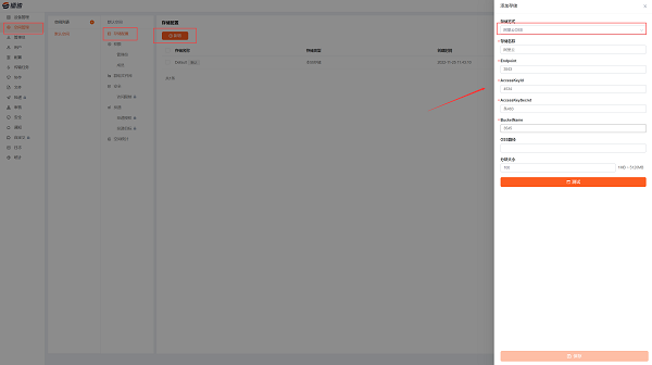 选择云存储方式,输入云存储的Endpoint,AccessKeyId,AccessKeySecret,BucketName ,点击保存,重启服务。