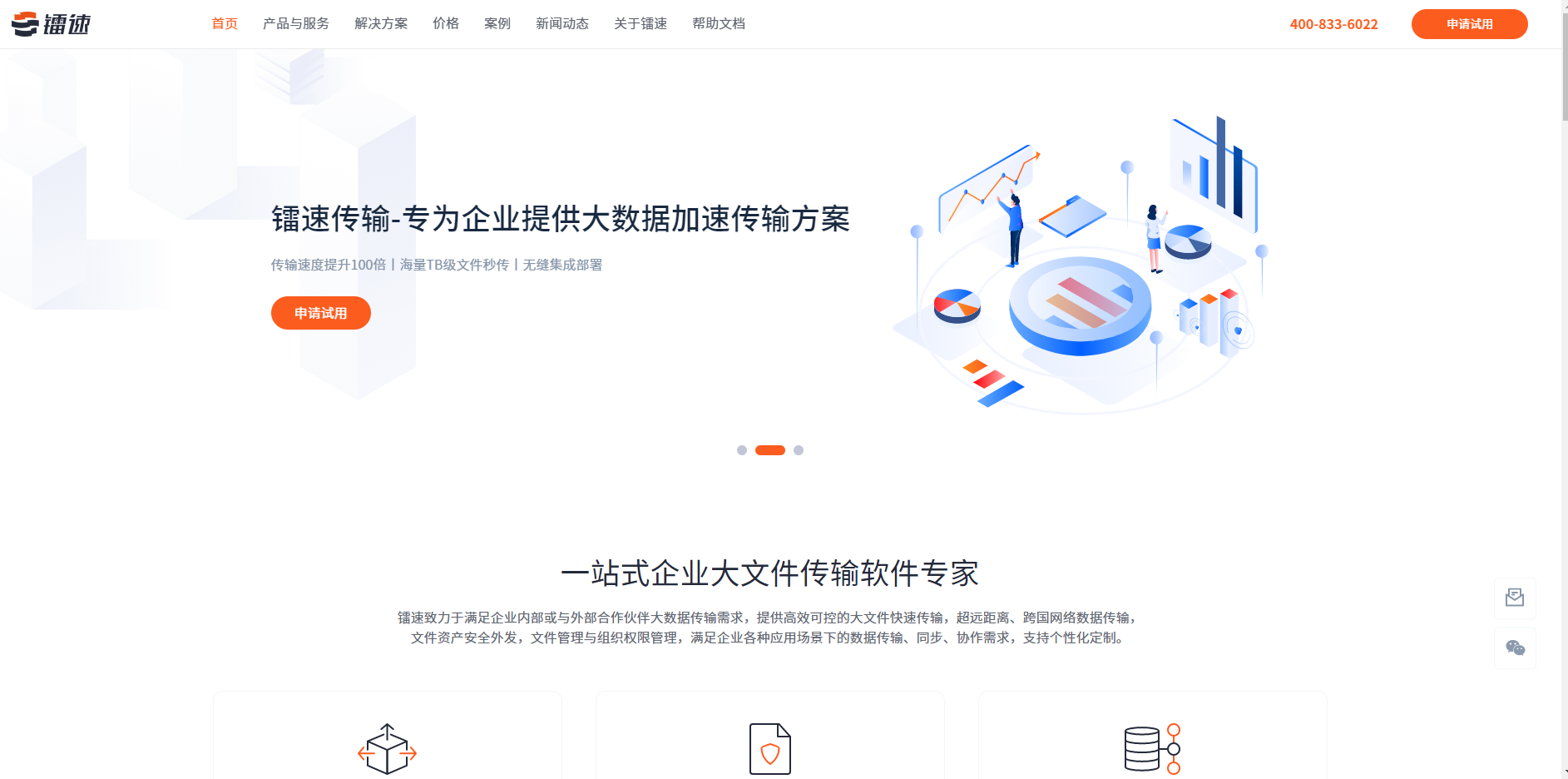 镭速,号称“一站式企业大文件传输软件专家”,是目前好用的文件传输和共享软件之一。满足企业内部或与外部合作伙伴大数据传输需求,提供高效可控的大文件快速传输,超远距离、跨国网络数据传输,文件资产安全外发,文件管理与组织权限管理,满足企业各种应用场景下的数据传输、同步、协作需求,支持个性化定制。
