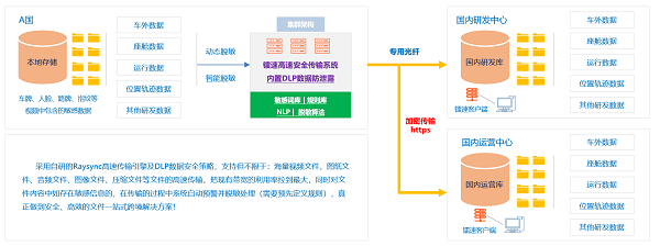 采用自研的Raysync高速传输引擎,搭配DLP数据安全防护策略,支持但不限于:海量视频文件、图纸文件、音频文件、图像文件、办公文件等文件类型的高速传输,把现有带宽的利用率拉到最大,同时对文件内容中如存在敏感信息的,在传输的过程中系统自动预警并脱敏处理(需要预先定义规则),真正做到安全、高效的文件一站式跨境解决方案!