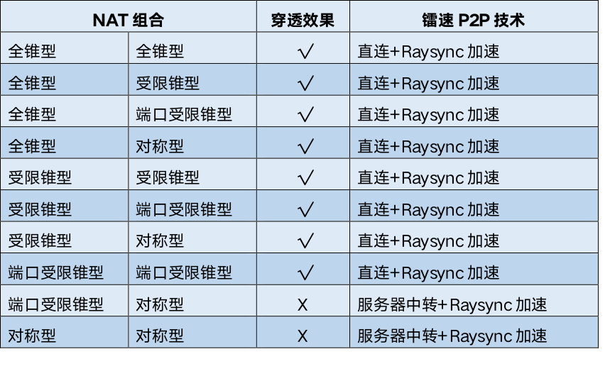 镭速传输作为一站式大文件传输解决方案提供商,从点对点传输技术原理出发,将10种NAT穿透技术组合与Raysync超高速传输协议嵌入镭速传输系统同时作用于点对点传输技术应用。在实际应用中,这10种NAT组合的穿透效果基本能满足当前点对点传输应用,即使面对少数无法穿透的情况,镭速也能通过Raysync超高速传输协议提升传输效率,找到点对点传输的最优解。
