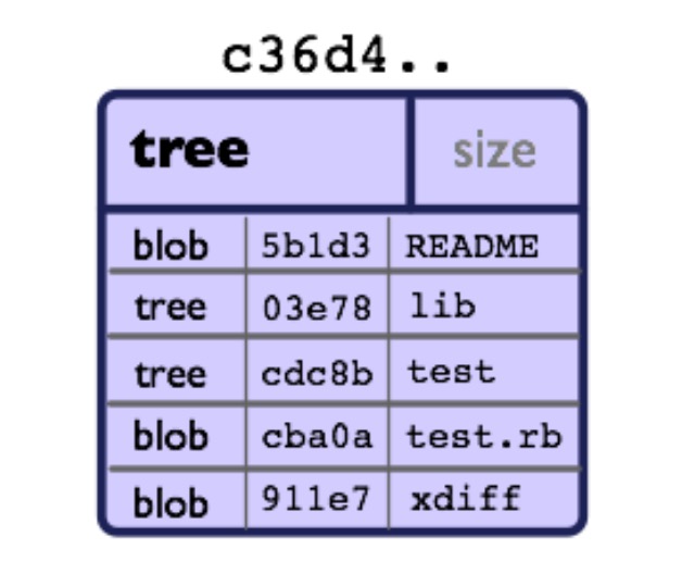 - “tree”有点像一个目录,它管理一些“tree”或是 “blob”(就像文件和子目录)