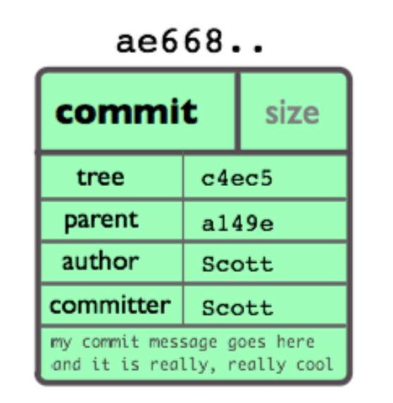 每个对象(object) 包括三个部分:类型,大小和内容。大小就是指内容的大小,内容取决于对象的类型,有四种类型的对象:“blob”、“tree”、 “commit” 和"tag"。