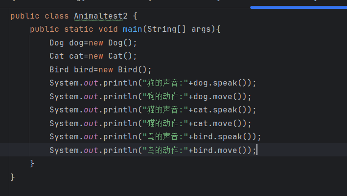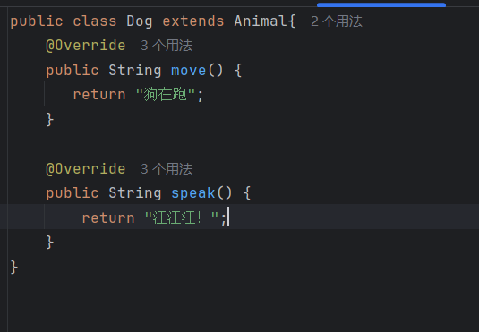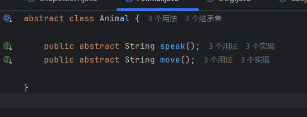 抽象类不能被实例化(new Animal())会报错,它可以包含抽象方法与普通/具体方法,但是其子类必须实现所有抽象方法(除非子类也是抽象类)。