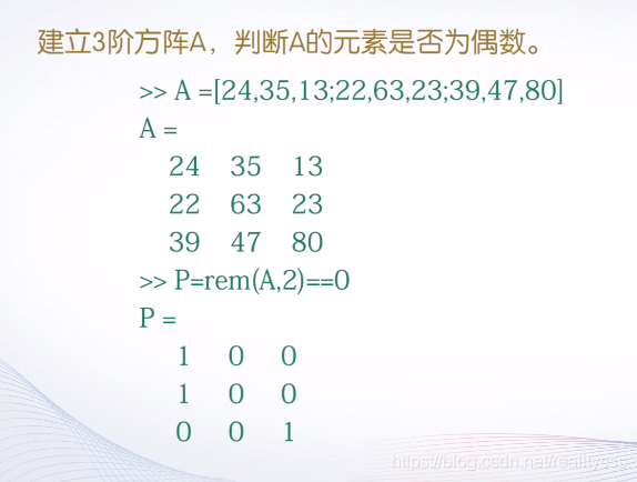 2.当参与运算的是矩阵时,将矩阵相同位置元素按标量关系进行比较,最终运算结果是一个与原矩阵同形的矩阵,元素由0或者1组成