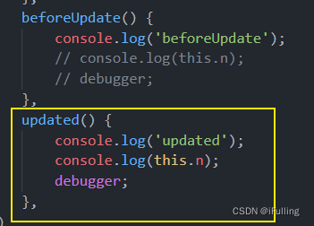 updated 是更新流程中的第二个生命周期函数,此时数据是新的,页面也是新的,即:页面和数据保持同步。