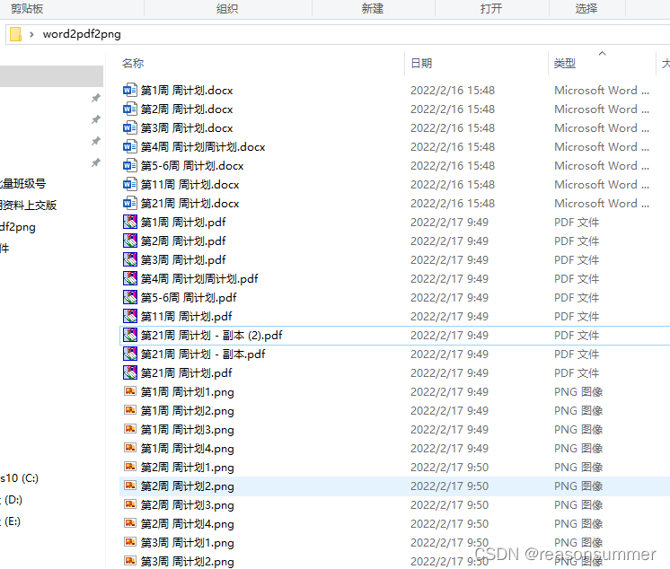 此代码可以将“桌面上的word2pdf2png‘文件夹里的所有docx文件’依次转成PDF和png。效果如下: