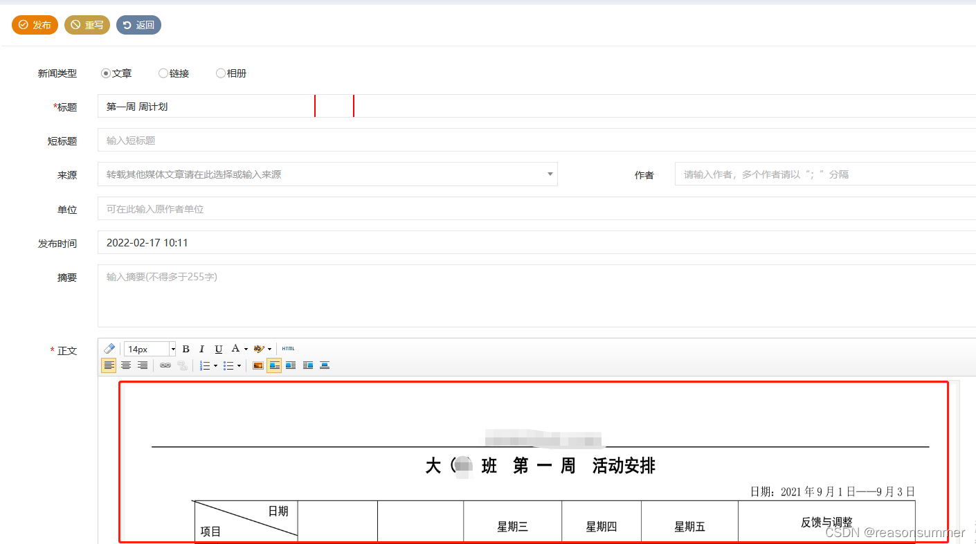 每月需要将班级周计划docx的第一页上传到班级网页中,由于周计划内有大量表格,因此我一般是用微信的ALT+A功能对周计划页面进行截图,将固定内容的图片上传网页。其中有两个问题: