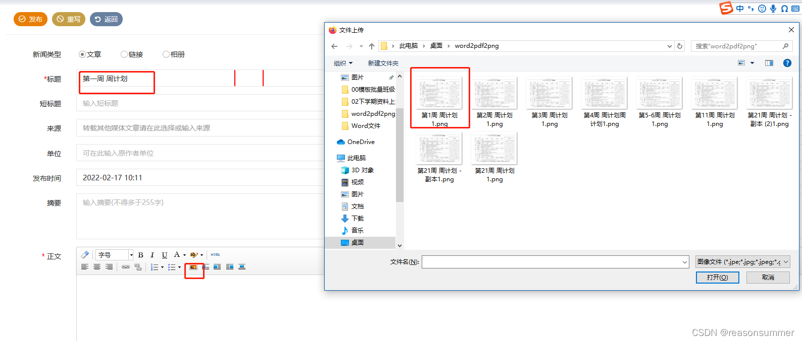 上传时可以看到周次名称,只有图片的情况下,减少选错的干扰。