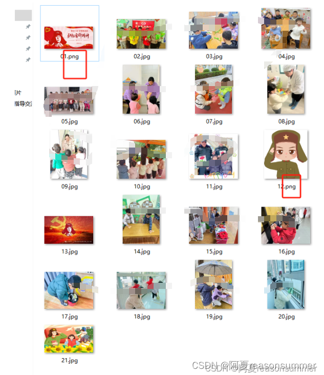 手动删除下载图片中的重复背景插入后,剩余图片的编号不连贯,使用Python为已经排序的图片重新设定01、02、03的编号。实现最终的“公众号图文打包归档”的需求