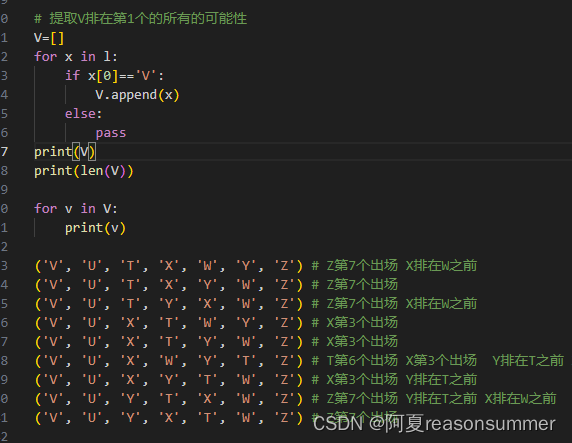 然后根据问题1,我提取第1个字母是V的排列组合